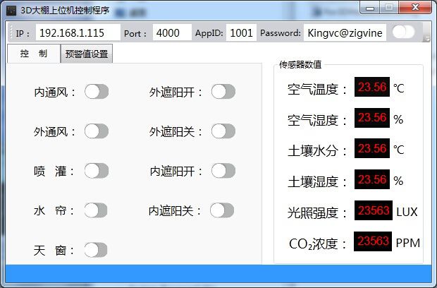 該平臺通過3D技術(shù)進行智能農(nóng)業(yè)大棚的虛擬仿真。系統(tǒng)提供溫濕度、水分、光照等參數(shù)的監(jiān)測和遮陽簾、排風扇、灌溉系統(tǒng)的自動控制功能。通過控制策略的設(shè)定,可模擬如何讓作物獲得最佳的生長環(huán)境。通過該系統(tǒng)學生可熟悉傳感器的使用、WSN應(yīng)用程序的開發(fā)。